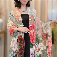 2025年新款多功能盤扣貴婦披肩新中式外搭旅遊披肩防曬絲巾