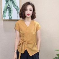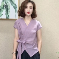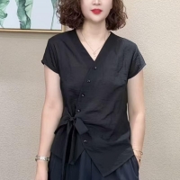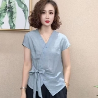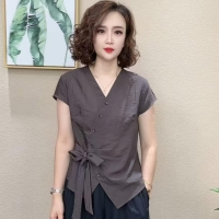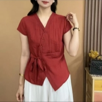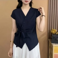 法式不規則V領襯衫 慵懶法式風情 不規則V領剪裁 隨性中透出優雅 精選透氣棉麻 自在如巴黎街頭的浪漫邂逅